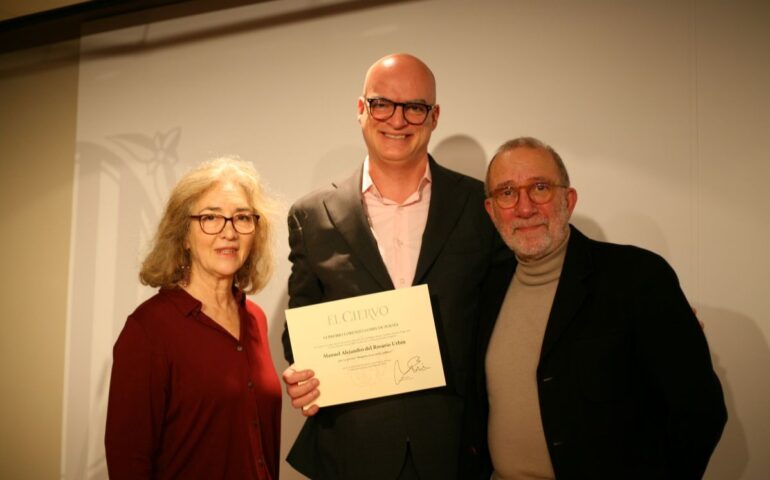 Terminado el intercambio poético, Aguado retomó la palabra para glosar la figura de Manuel Alejandro del Rosario Urbín, ganador de la VI edición del premio Lorenzo Gomis de poesía, quien dirigió unas palabras al público, recitó su poema –Respirar es un verbo público- y recibió el diploma de manos de Soledad Gomis, hija mayor del poeta Lorenzo Gomis.